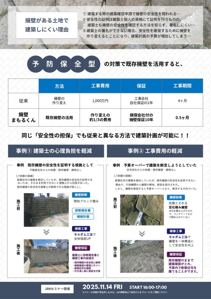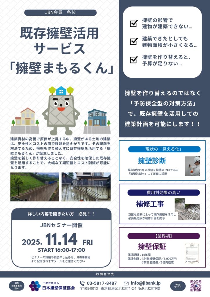 既存擁壁の活用方法セミナー開催のお知らせ|JBN関連事業者会員コラボセミナー(2025年11月14日)